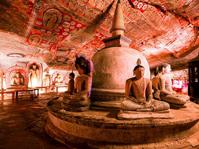 Dambulla Cave Temple, also known as the Golden Temple of Dambulla, is a UNESCO World Heritage Site located in central Sri Lanka. The temple complex consists of five caves, which were converted into a temple by King Valagamba in the 1st century BCE. The caves contain over 150 statues of Buddha and various other deities, as well as stunning frescoes depicting scenes from Buddha's life. The largest and most impressive cave is the Mahavira Cave, which houses a 14-meter-long reclining Buddha statue. Visitors can explore the caves and admire the ancient artwork while also taking in panoramic views of the surrounding countryside. Dambulla Cave Temple is an important pilgrimage site for Sri Lankan Buddhists and a must-visit attraction for anyone interested in the country's rich cultural history.